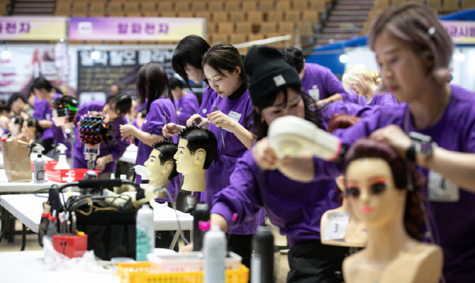 서울 송파구 잠실실내체육관에서 열린 '2024 제8회 서울시 미용예술경연대회'에서 헤어부문 참가자들이 경연을 펼치고 있다. (사진=뉴스1)