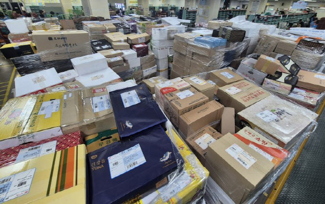 한 지방우정청에 택배 물량이 모인 모습.(사진=뉴시스)