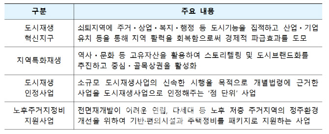 도시재생사업 유형.(자료=국토교통부)