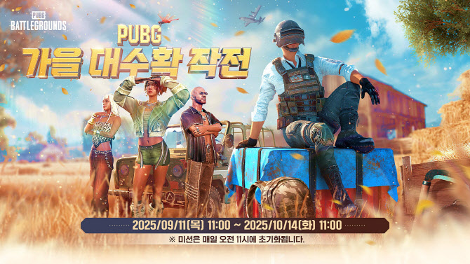 크래프톤(259960)의 배틀그라운드는 스팀 이용자를 대상으로 ‘PUBG 가을 대수확 작전’ 이벤트를 10월 14일까지 진행한다. 다양한 미션을 완료하여 추수 공헌도를 모으고 단체 추수 공헌도를 함께 달성하면 특별한 보상을 제공한다.