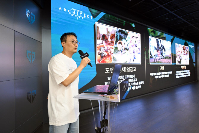 김민규 드림에이지 사업실장이 15일 미디어 시연회에서 신작 MMORPG ‘아키텍트’를 소개하고 있다. (사진=드림에이지)