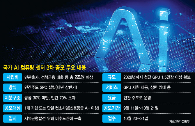 앞서 과학기술정보통신부는 상반기 ‘국가AI컴퓨팅센터’ 사업 공모를 두 차례 진행했지만 모두 유찰됐다. 업계가 등을 돌린 배경에는 △공공 51%·민간 49%의 불리한 지분 구조 △공공 지분에 부여된 매수청구권 △국산 AI 반도체(NPU) 의무 도입 등 과도한 규제가 자리 잡고 있었다. 이에 과기정통부는 민간 지분을 70% 이상으로 확대하고, 매수청구권을 삭제했으며, 국산 NPU 도입 의무도 철회하는 등 조건을 대폭 완화했다.