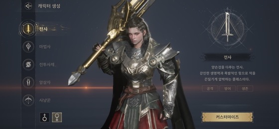 특히 캐릭터 생성 시 제공되는 정교한 커스터마이징 기능은 캐릭터를 완성하는 재미를 선사했다. 다섯 가지 클래스 중 가장 직관적인 '전사'를 선택해 게임을 시작했다.
