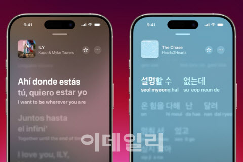 iOS26 업데이트를 통해 가장 눈에 띄는 애플 뮤직의 기능은 가사 자동 번역 기능이다. 한국어 가사의 뜻이 담긴 영어 번역과 발음나는 대로 2가지 버전으로 제공되는 것이 특징이다.