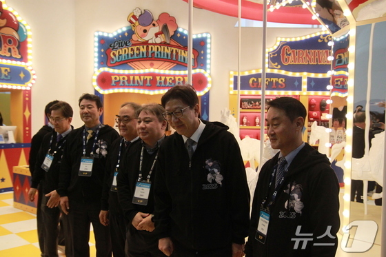박형준 부산시장(오른쪽 두 번째)이 조영기 한국게임산업협회 협회장(오른쪽 첫 번째), 김태영 웹젠 대표(오른쪽 세 번째) 등과 웹젠의 지스타 현장 부스를 둘러보고 있다. 게임전시회 '지스타 2025'는 이날부터 16일까지 나흘간 열린다.2025.11.13/뉴스1 © News1 김민재 기자