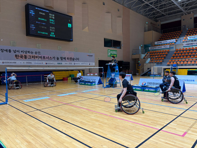 장애인배드민턴 대회 중 휠체어(WH1-WH2 남자복식) 경기사진. 사진=KT스카이라이프