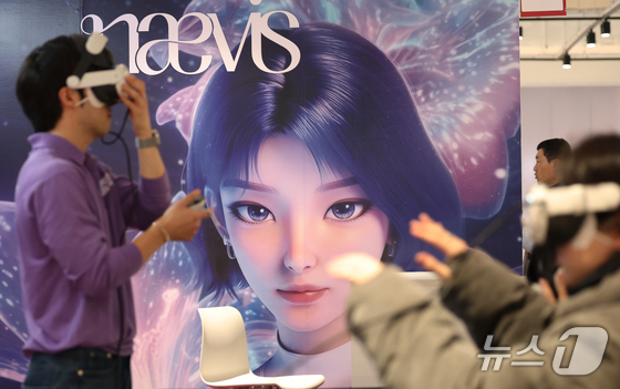 서울 강남구 코엑스에서 4일 열린 'AI 콘텐츠 페스티벌 2025' SM엔터테인먼트 부스에서 방문객들이 VR 콘서트를 체험하고 있다. /뉴스1 © News1 오대일 기자
