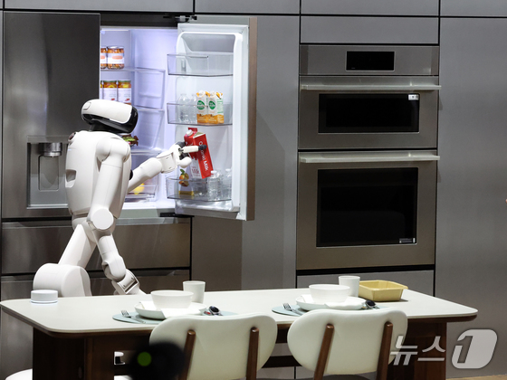 세계 최대 IT(정보기술)·가전 전시회 'CES 2026' 개막을 하루 앞둔 5일(현지시간) 미국 네바다주 라스베이거스 컨벤션센터(LVCC)에서 열린 LG전자 사전 부스투어에서 AI 홈로봇 'LG 클로이드'가 아침식사를 준비하고 있다. 2026.1.6/뉴스1 © News1 황기선 기자