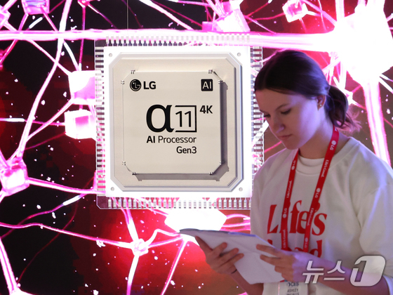 세계 최대 IT(정보기술)·가전 전시회 'CES 2026' 개막을 하루 앞둔 5일(현지시간) 미국 네바다주 라스베이거스 컨벤션센터(LVCC)에서 열린 LG전자 사전 부스투어에서 '알파11' AI프로세서가 진열돼 있다. 2026.1.6/뉴스1 © News1 황기선 기자