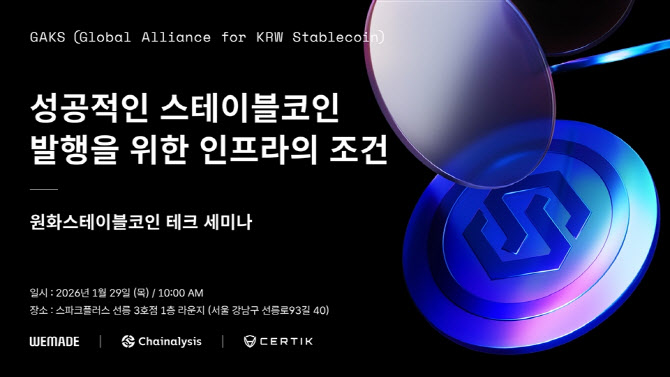 위메이드(대표 박관호)는 오는 29일 오전 10시 서울 강남구 스파크플러스 선릉3호점에서 ‘성공적인 스테이블코인 발행을 위한 인프라의 조건’을 주제로 원화 스테이블코인 테크 세미나를 개최한다고 밝혔다.