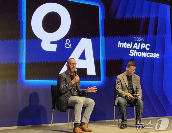 배태원 인텔코리아 대표와 조쉬 뉴먼 인텔 컨슈머 PC 부문 총괄이 서울 삼성동 웨스틴 서울 파르나스에서 열린 인텔 AI PC 쇼케이스 기자간담회에서 답변하고 있다. 2026.1.28 뉴스1 © News1 김민석 기자