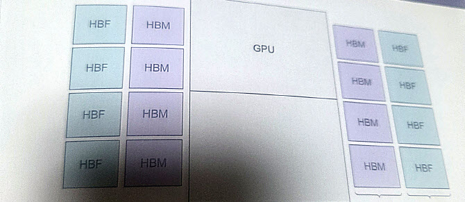 두 번째는 HBF2와 HBM을 결합한 하이브리드 구조다. 대역폭이 필요한 학습 변수는 HBM이, 대용량 컨텍스트와 KV 캐시는 HBF가 맡는 방식으로, 김 교수는 “속도는 HBM, 기억은 HBF”라고 설명했다.