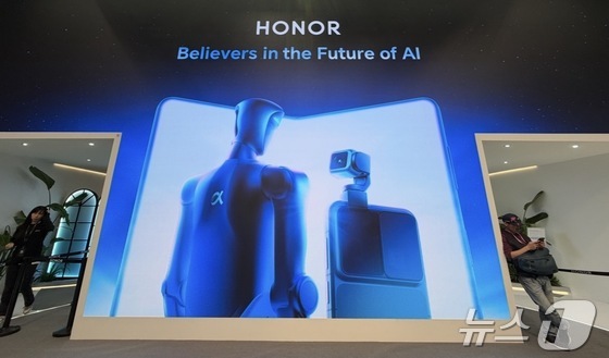 4일(현지시간) 스페인 바르셀로나에서 열린 모바일월드콩그레스(MWC) 2026 전시관에 중국 스마트폰 업체 아너(HONOR)의 AI 디바이스와 로봇 기술 비전을 소개하는 광고가 나오고 있다. 2026.03.04 © 뉴스1 김민수 기자