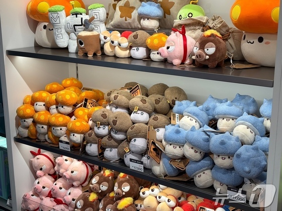 굿즈샵 '메이플 스토어' 에서는 인형과 게임 키링, 드링크보틀 등 여러 종류의 IP 상품을 구매할 수 있다.