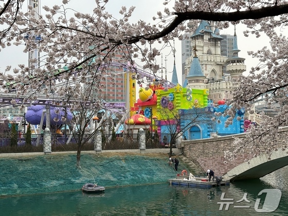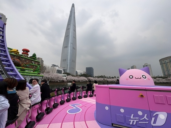 1일 찾은 서울 송파구 '메이플 아일랜드'에는 예년보다 일찍 핀 벚꽃과 메이플스토리 캐릭터들이 어우러져 있었다.