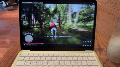 디자인과 색상에서도 제품의 방향성이 드러난다. 이번에 대여받은 시트러스 색상은 기존 맥북의 차분한 톤과 달리 밝고 경쾌한 인상을 준다. 알루미늄 유니바디 특유의 완성도를 유지하면서도 색상 선택지를 통해 젊은 층을 겨냥한 변화가 읽힌다. 특히 대학생이나 사회초년생 등 '첫 맥북'을 고려하는 사용자층을 겨냥한 디자인으로 보인다. 단순 업무용 기기를 넘어 일상에서 사용하는 개인용 노트북으로서의 성격을 강화한 셈이다.