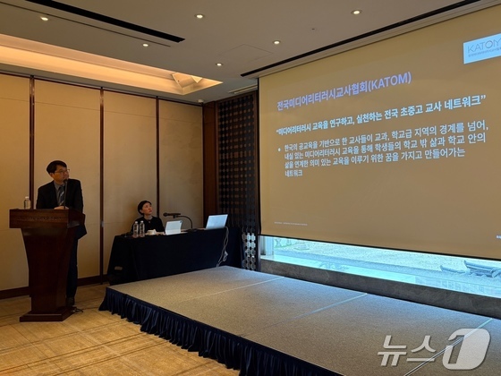 박한철 전국미디어리터러시교사협회 회장이 9일 오전 서울 중구 웨스틴조선 호텔에서 열린 로블록스 디지털 시민의식 미디어 브리핑에서 발표하고 있다.2026.4.9 © 뉴스1 김민재 기자