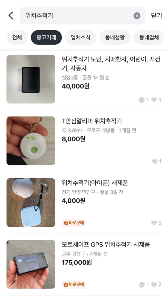 당근 중고거래 게시판에 거래용으로 올라온 위치추적기 (당근 갈무리)